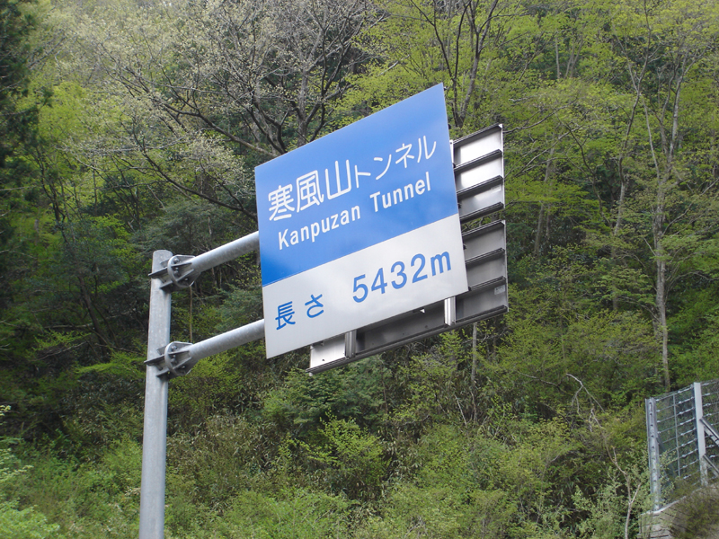 そして再度山道に突入。 ずっと走って行き「寒風山トンネル」というのがあった。 長さを見たらなんと5432m!! 今までの最高記録が3904mだから、それより1.5kmほど長い。 これは通らなくては。 トンネルを通らないでも山にはいけるのだけど、ちょっと遠くなるけど通ってもいける。 さっそく5kmのトンネル体験! すっごい長い。 ずっと緩やかな上り坂で交通量も少なくていいね! ただ寒かった~