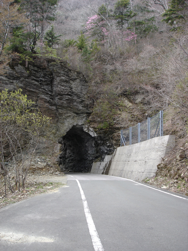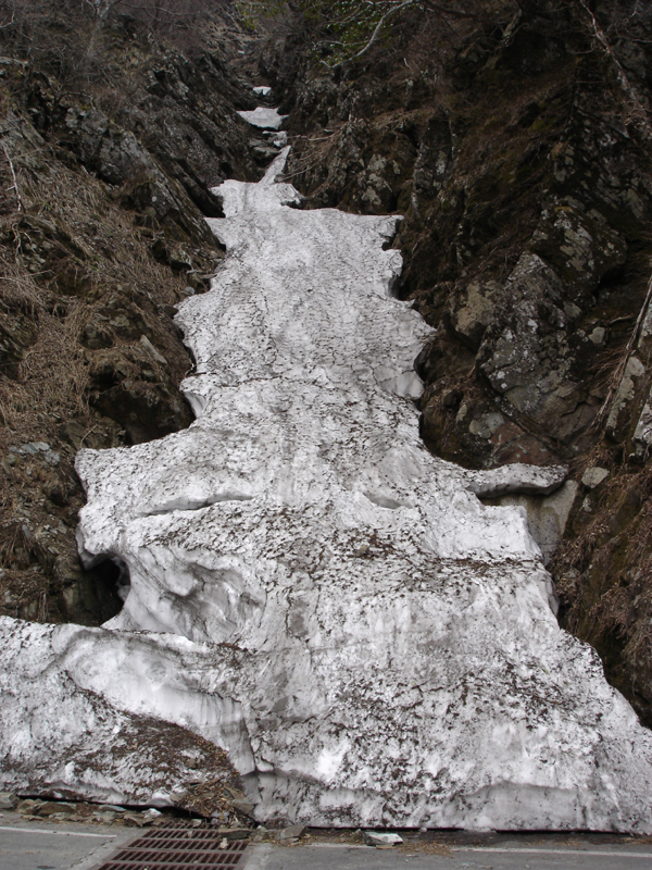 けっこう寒くて、雪も残っていて、道路の端っこが崩壊していたり、落石があったりガードレールが崖に落っこちていたり……なかなか愉快な道だった。