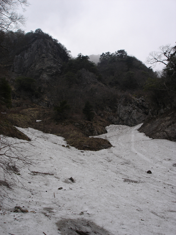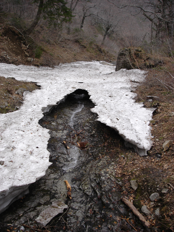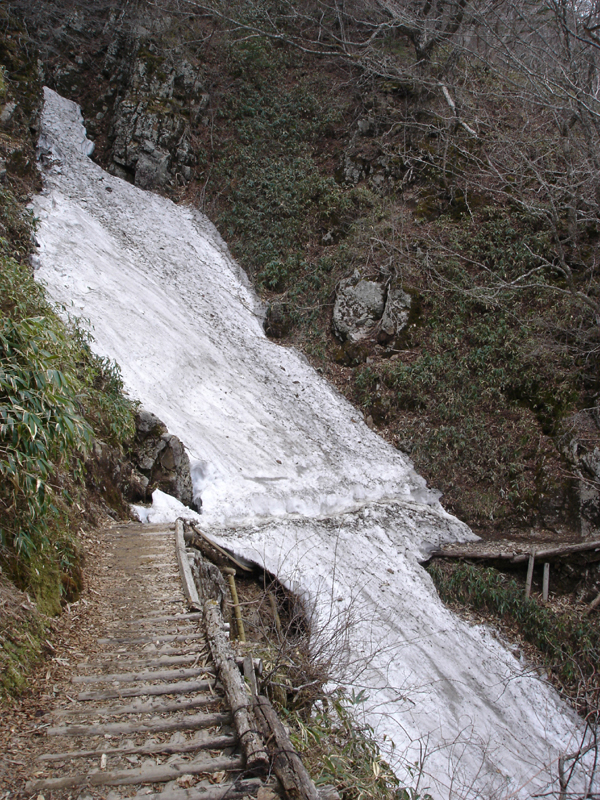 山奥の道 山奥の道 無名な滝 無名な滝 岩のトンネル 山の道 未だ残る雪