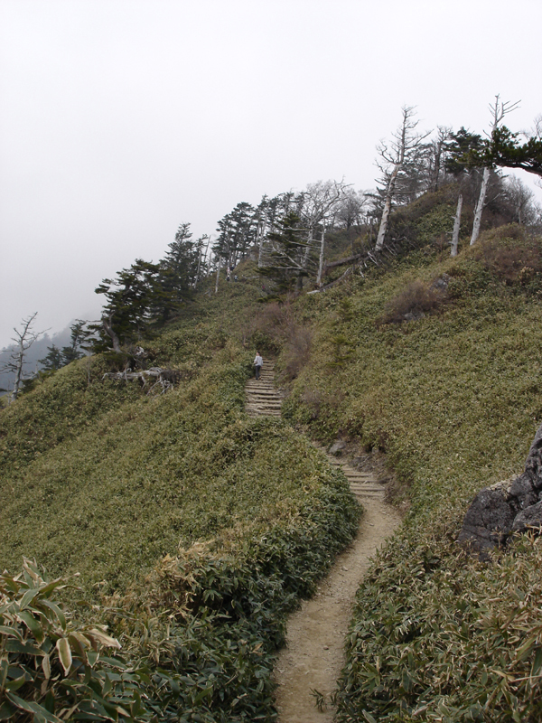 登山道 石鎚山の看板 登山道にも雪 登山道 登山道からの景色 登山道 登山道からの景色 登山道からの景色 雪渓 雪渓