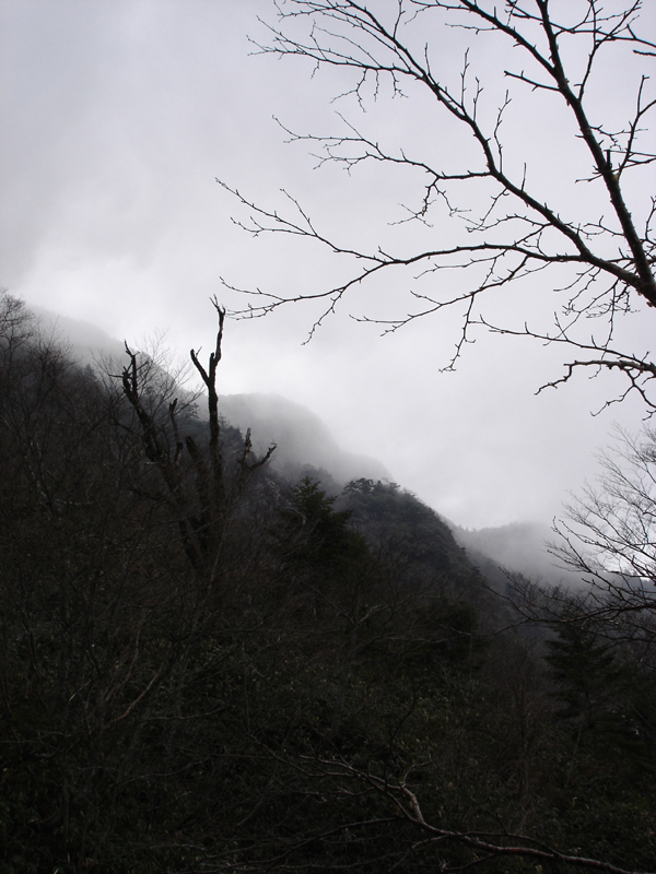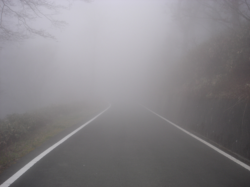 そして急いで下山する。 下山するときも鎖で降りる。 登りよりも下りのほうが断然難しい。 無事に2つの鎖を下りきって下山する。 駐車場についたのが18時。 暗くなる前に山道を下りきりたい…… しかしガスがかなり出てきて視界が悪い。 20m先も見えないような。 しかも道は細くてカーブばかりで危険。 慎重かつスピードを出して山を運転して降りる。