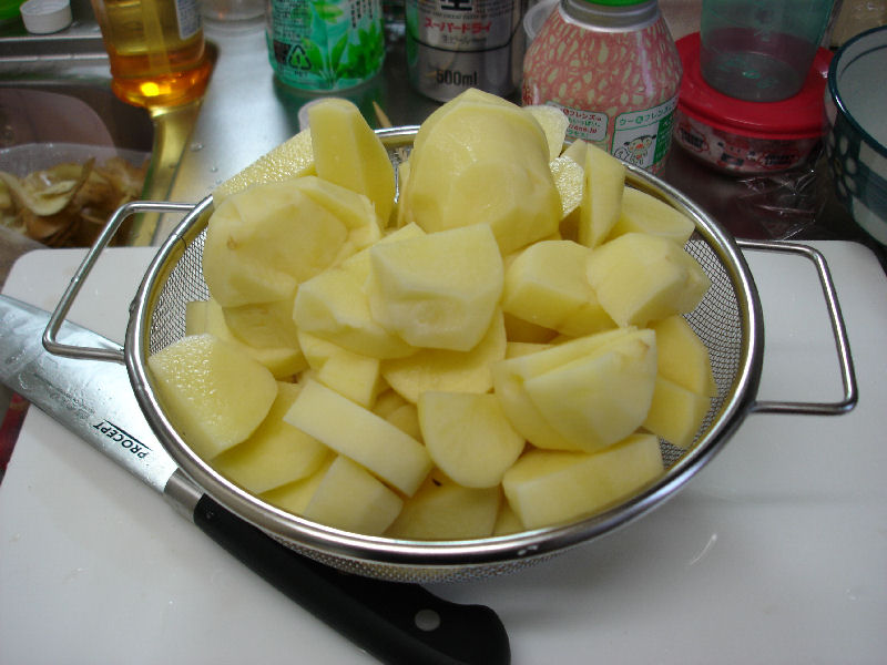 そして歯医者に行ってポテトサラダを作る。 ピーラーがあれば便利なのだけど、ないので包丁で… じゃがいも剥くの苦手なんだよね~