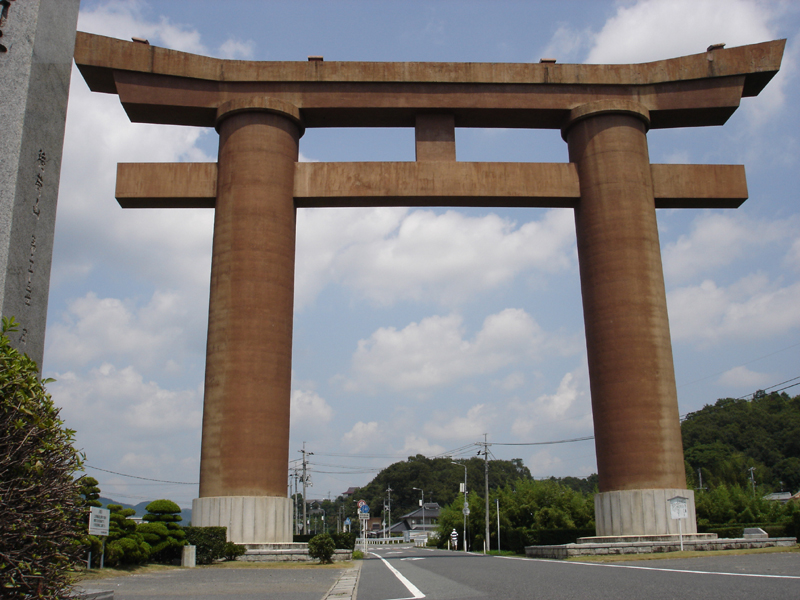高松稲荷の巨大鳥居 国道484号線 高梁を眺める