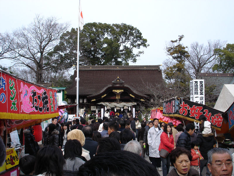 お参りの行列ができていたので、最後尾に出店のポテトフライを食べながら並ぶ。