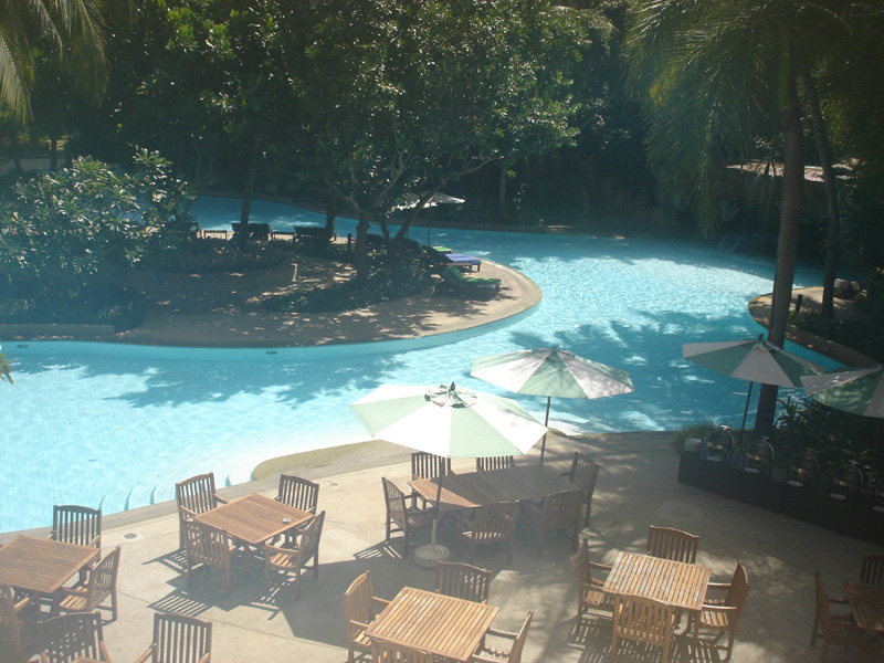 8時起床。 起きてすぐにプールに向かう。 このホテルには3箇所のプールがある。 とりあえず向かったのはレストランの目の前にあるプール。 夕べ泳げなかったので、その分まで泳がなくては、と思ったのだけど、まずは朝食。