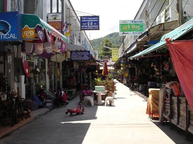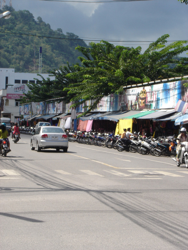 プーケットタウンの「ROBINSON」というデパートの前でおろしてもらって観光開始。 すぐにタイ人らしき人がやってきて「ココノデパートタカイ。 ムコウヤスイ。 タクシースグ」と「安いショッピングセンターまでタクシーに乗っていかない?」と誘ってくる。 まだついたばかりだし、観光したいし断った。