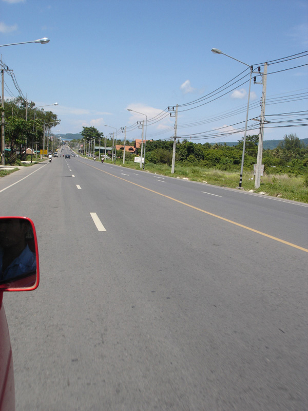 タイの交通マナーはものすごい悪い。 道路を走っている車両の半数がバイク。 車が走っていると、右から左から平気でバイクが抜かしていく。 かなりのバイクがノーヘル。 さらに2人か3人乗りをしている。 前に遅い車が走っていると、対向車線にはみ出して、抜かしていく車もたくさん。 こんな無謀な運転でよく事故が起きないな~、それはすごい。