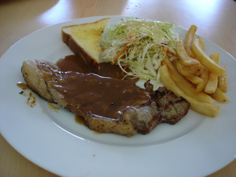 お腹もすいたので、ROBINSON斜め前にあるファミレスみたいなところで、ステーキを食べる。 これがなんと99バーツ。 安い! だけど肉がちょっと固めだったかな。 お腹もいっぱいになったのでショッピング再開。