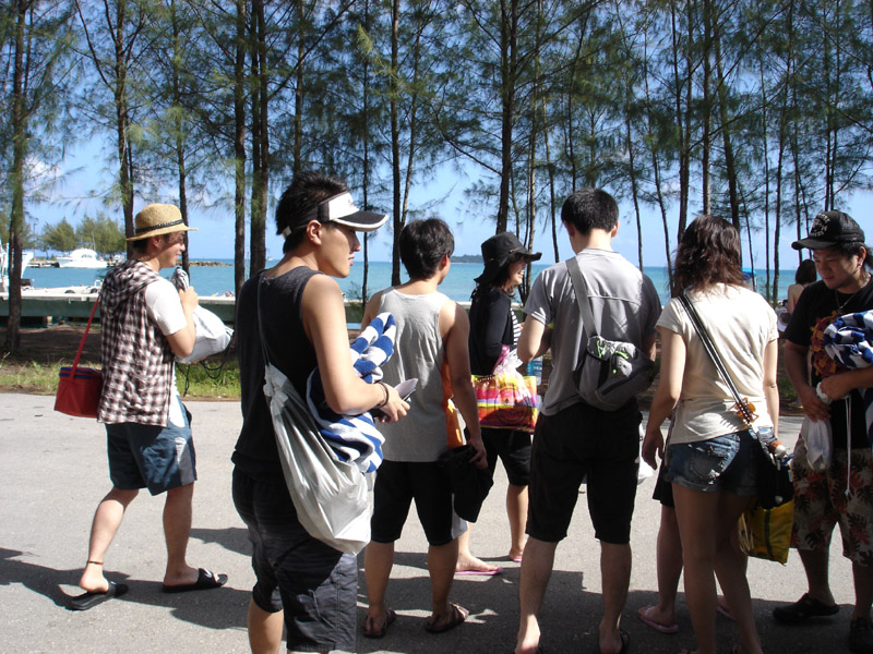 すぐにホテルのロビーに集合して、みんなでマニャガハ島に向かう。 迎えに来たバスにのり、船着場へ。 ここでモーターボートに乗り換えて、マニャガハ島へ。 大きな客船と違って、モーターボートは速い。 そして水しぶきがかかる。 どうやら左右のバランスが悪いと、水しぶきがあがるらしい。