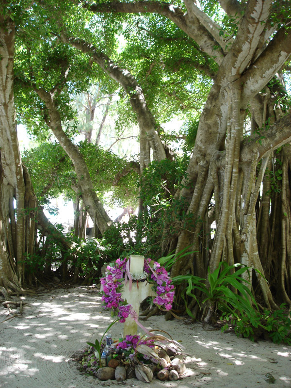 メインビーチのちょうど反対側あたりに十字架と神秘的な大木と石碑があった。 これが何を意味するのかはわからない……