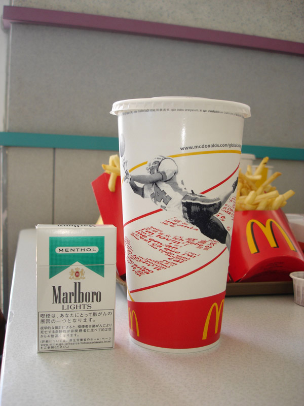 タクシーはDFSの交差点を東に曲がっていった。 その交差点の南100mくらいのところに、マックの看板があった。 こんな近くにあったのか……