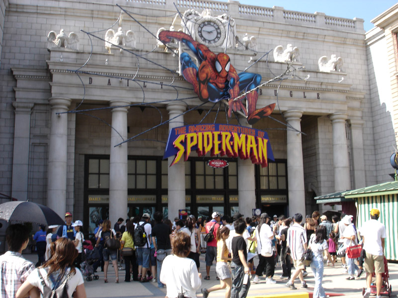 乗った感想は……「怖っ」。 いきなり急降下から始まる。 恐ろしすぎる…… 恐怖の数分間を味わって、次は「スパイダーマン」。 エクスプレスパスを使い快適入場。 立体メガネをつけて、本当に目の前にスパイダーマン達がいるように見えた。