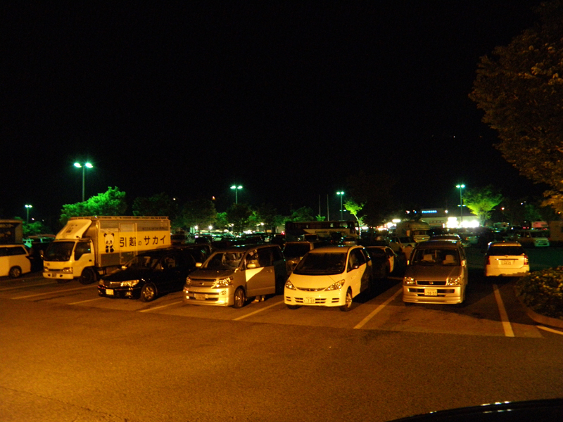 このSAも大混雑で車を止めるスペースを探すのにすごい苦労した。 もう夜で景色が全く見えないのだけど、富士山がすぐそばにあるはずなので、朝になったら見えるかな~