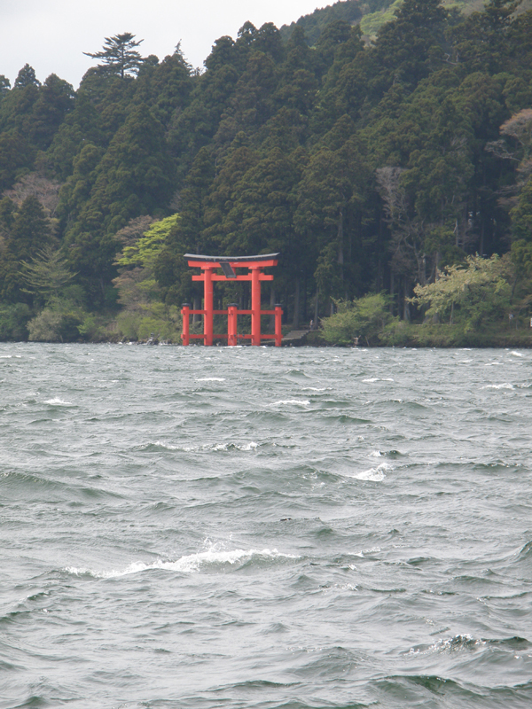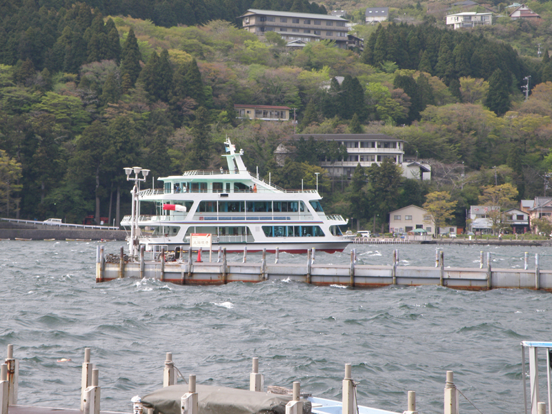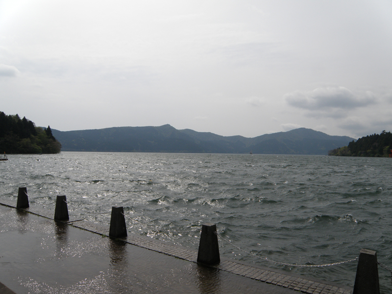 芦ノ湖の神社の方に車を止めて歩いて散策。 風が強いためスワンや手漕ぎボートは運休らしい…… 海賊船という、向かい岸への渡し舟は往復3000円近くしてしまうので、乗ることが出来なかった。 ソフトクリームと蒸したての饅頭を買って芦ノ湖を出発。 まだ時間は早いけどホテルに行こうかな。