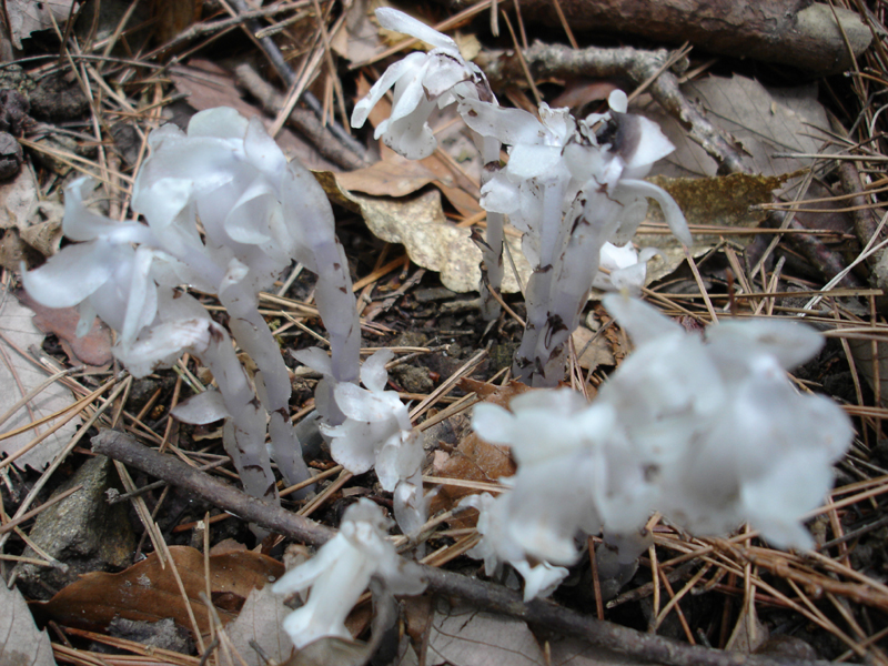 771mピークを越えて、あとは森林の中を歩くだけ。 途中でものすごい気持ち悪いものを発見。 見た目は花? だけど茎から花まで全て真っ白。 触ってみたのだが、ゴムみたいにブニョブニョしている。 これはなんだろう?