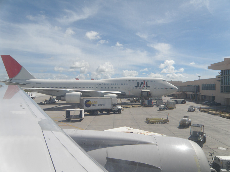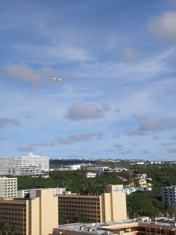 うとうとしているうちにグアムに近づいていく。 そして飛行機は3時間ほどでグアムに到着。 初めてのグアム。 おそらく日本人が一番旅行をしに行く海外だろう。