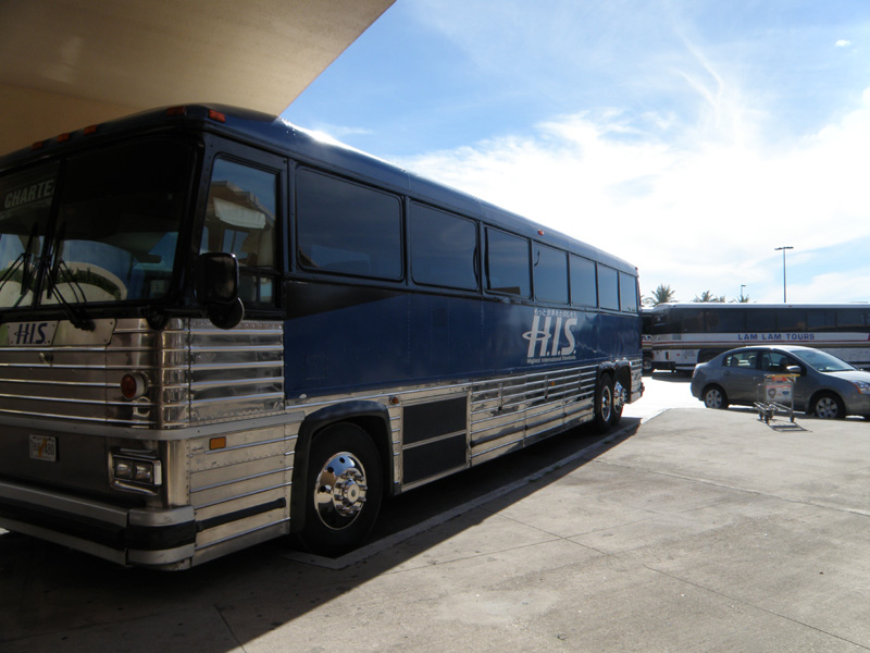 バスはホテルに向かう。 ホテルは近くにあるらしく、ガイドさんがどんどん話を進める。 外の景色をもっとゆっくり見たいのになぁ。