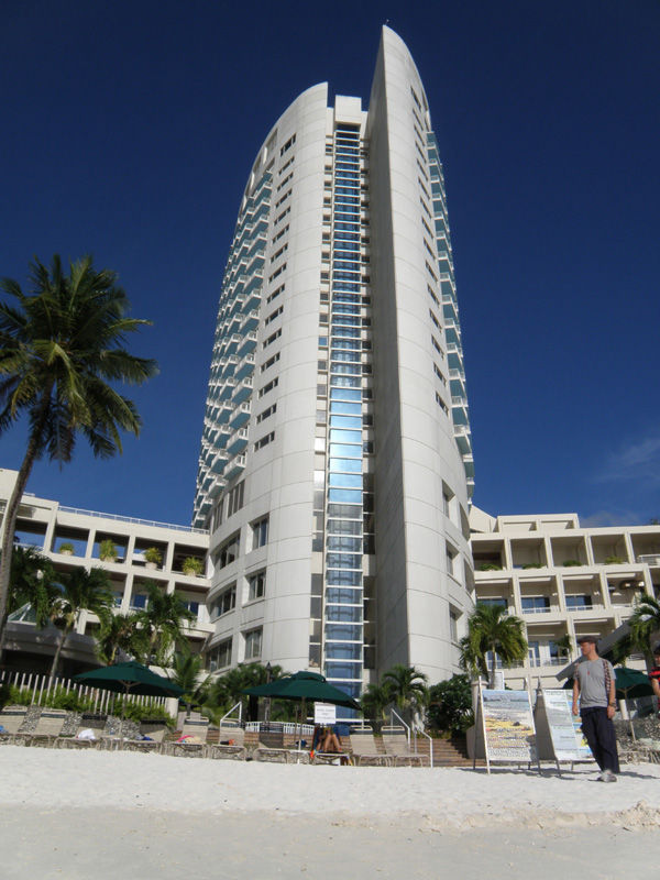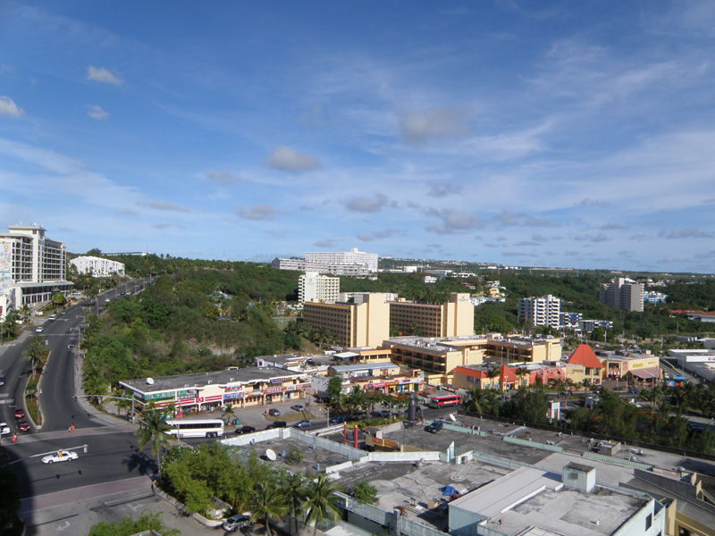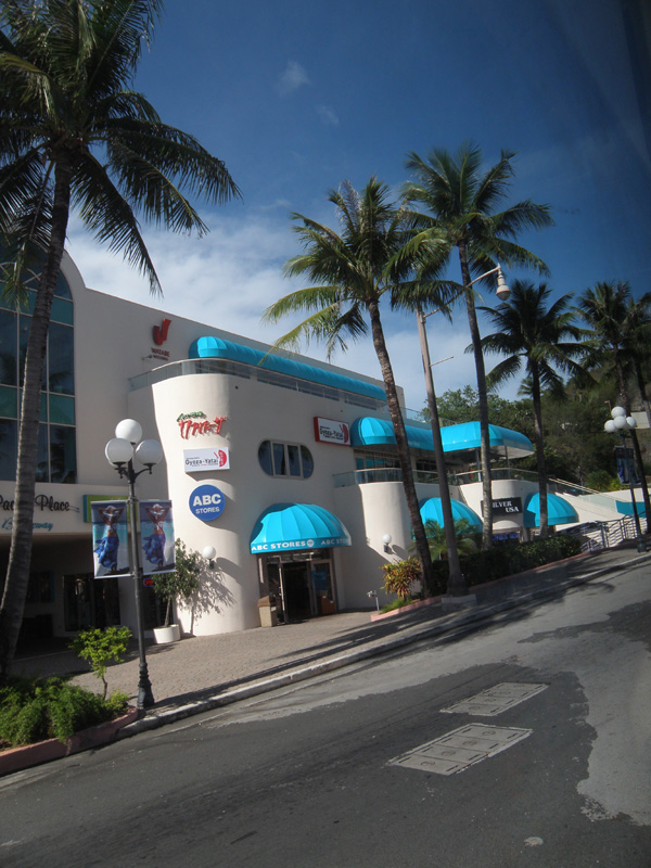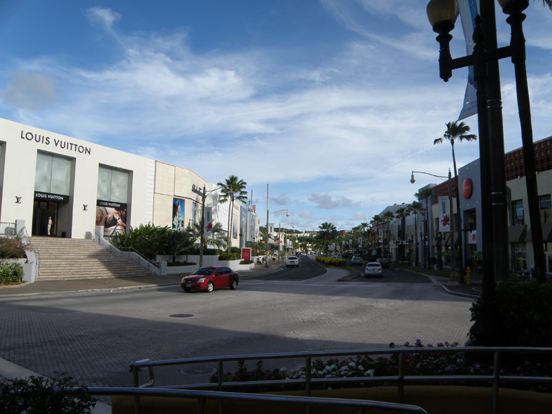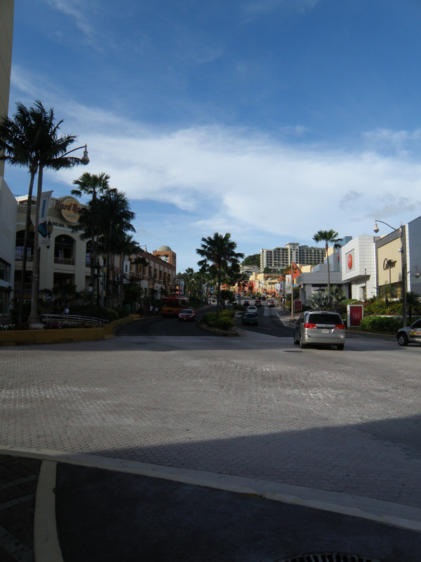 ビーチを歩いて、隣のホテルのビーチに入ってしまった。 そこからホテルを抜けて道路に出た。 さぁ、グアムの街中だ。 ここが一番の繁華街らしい。 買い物もほとんどここで済むみたい。