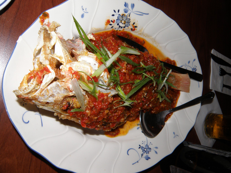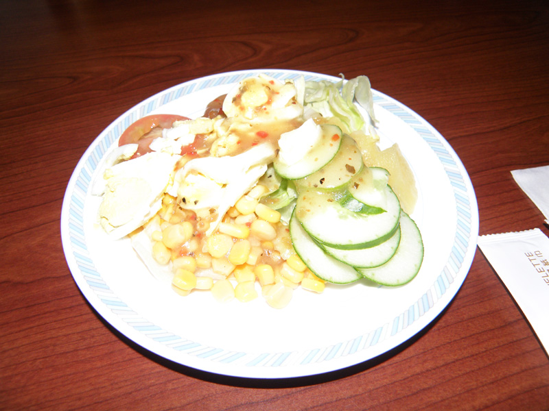 ここのレストランでは、サラダはバイキング形式。 他は大皿に盛られた料理が次々と運ばれてくる感じ。