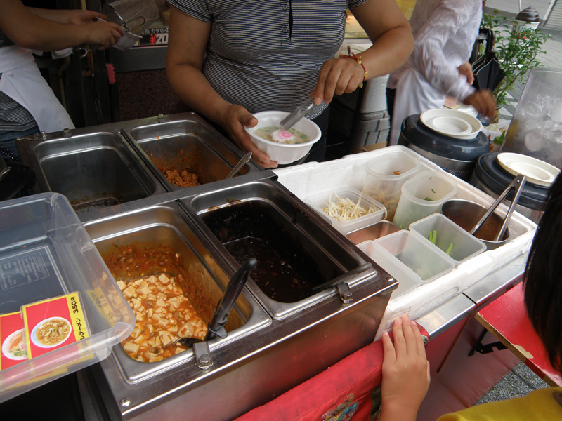 小さい豚まん、フカヒレラーメン、ジャンボ餃子、ゴマ団子、タピオカ入りジュースなど。
