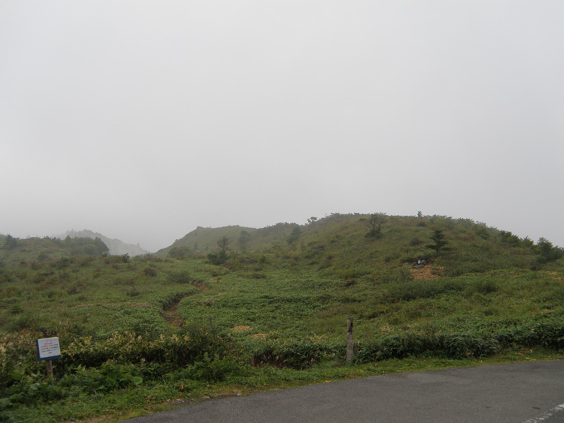歩き始めて2分ほど、寒峰「4.7km」の看板が見えたあたりで雨が降ってきた…… レインコートを着るべきか、着ないべきか…… 悩んだが、とりあえず、もう少し強く降ってくるまで着ないで行くことに。
