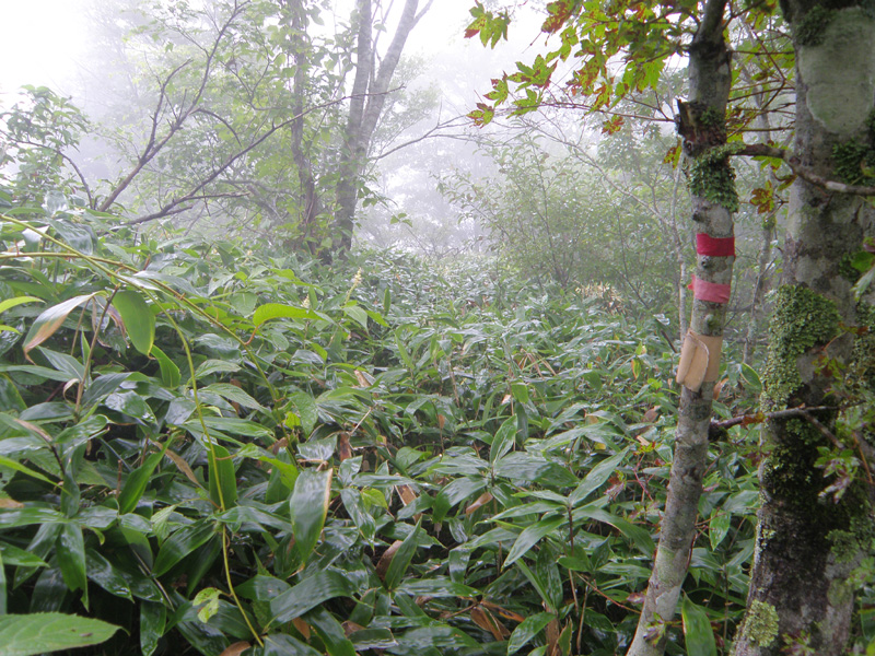 そこから先は、平均して胸の下くらいの笹、深いところでは頭を越えるくらいの高さのところもあった。