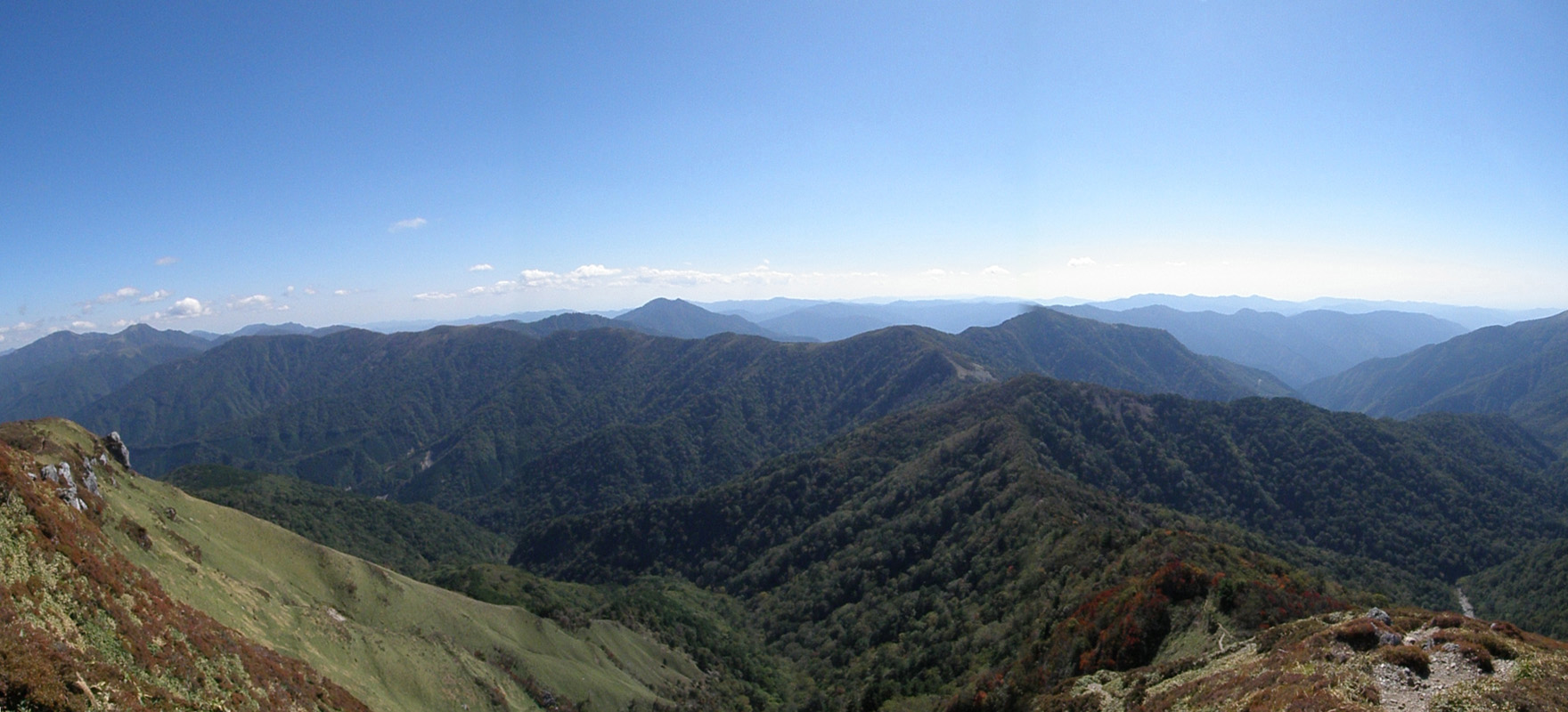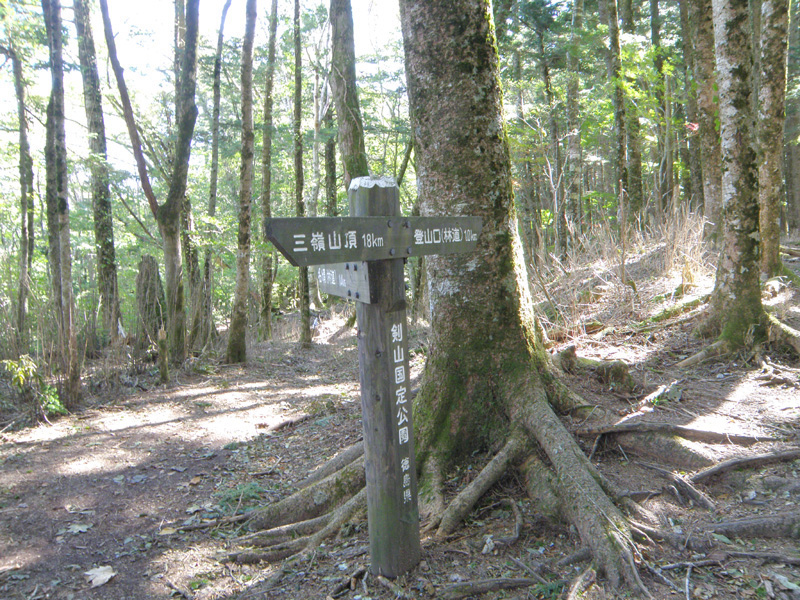 さっそく出発。 三嶺は、どの登山道から歩いても3時間近くかかるため、四国のなかではけっこうたどり着きにくいとされている山らしい。 前に白髪山経由で登ったが、そのときも3時間半近くかかってるな。