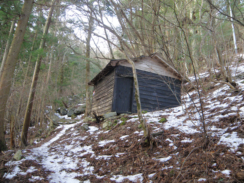 ヒュッテは営業期間外なので、扉は固く閉ざされている。 近くに冬小屋というのがあったので、覗いてみた。