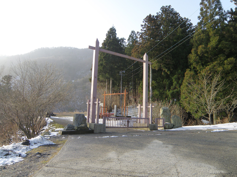 何度か林道を横切り、ようやく神社まで到着。 林道が工事と化してなければ、ここまでは車で来ることもできる。