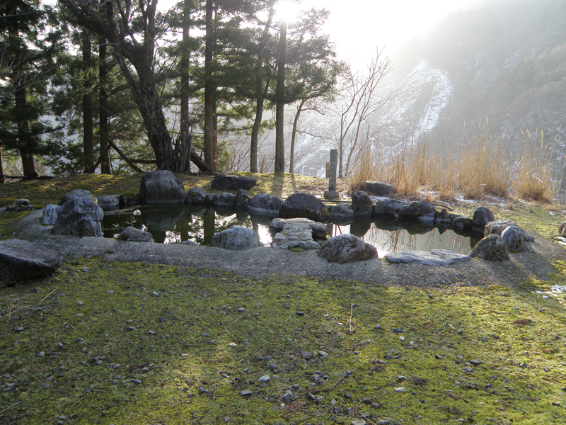 コースの由来となる「冨士の池」を見て、神社の脇から登山道に。