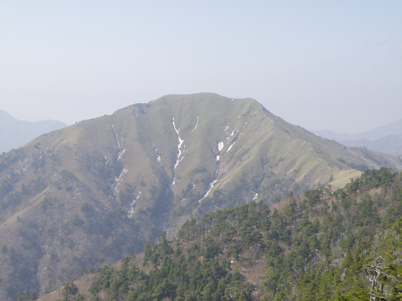 剣山を下り、次郎笈の上りに入ったあたりで、後ろを振り向くと素晴らしい姿の剣山が見られる、と以前来た時、写真家のおじさんに教わったことがある。