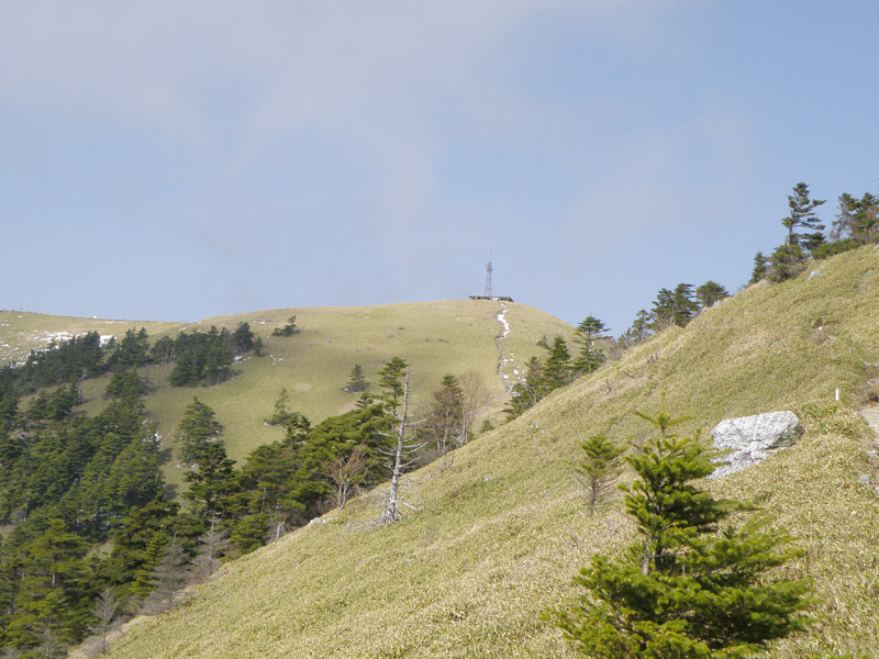 頂上付近のなだらかな場所に着いたのだが、人が誰もいない……けっこう人気の山なので、誰かしらいると思ったのだが…