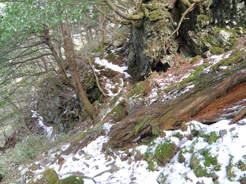 さて、まずは西島までか。 見ノ越から登って帰る時にいつも通るルート。 剣神社の大岩の下を通って行った。