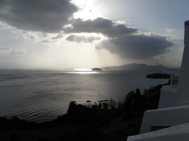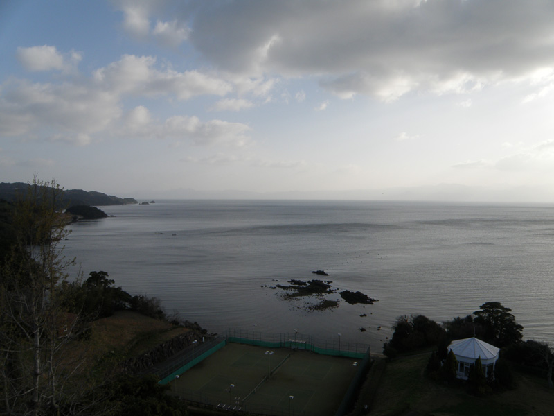 昨日とは違って、とてもいい天気。 ホテルの窓から見える大村湾が美しい。 瀬戸内海とはまた違った内海。