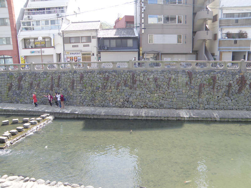 たまにテレビでやってるのだが、眼鏡橋付近の石垣に、ハートマークの石があるそうだ。