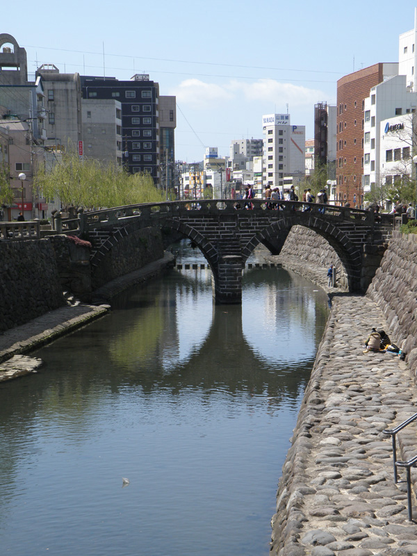 子供がいなかったら路面電車で移動するのが楽しいのだが、そういうわけにもいかないので、車に乗って次のスポットへ。 お次は有名な「眼鏡橋」。