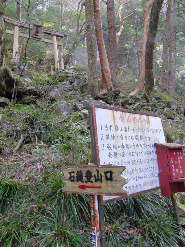 しばらく歩き、登山ポストのある登山口に到着。 ここから本格的な登山が始まる。