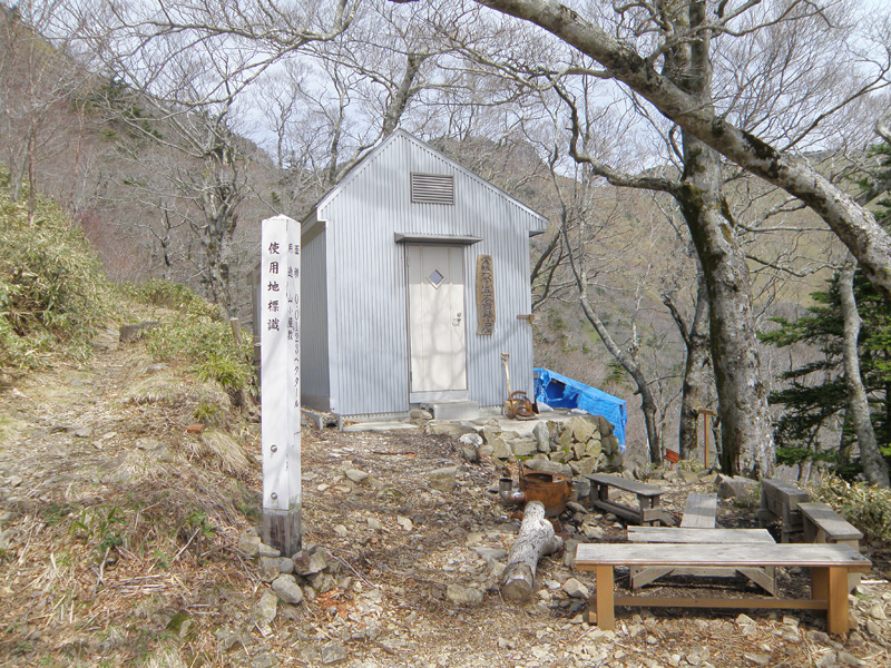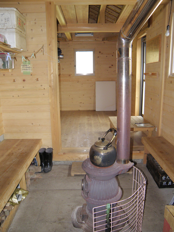 1525m地点を越えて、愛媛大学小屋に到着。 中を覗いたら、綺麗に整備されていて快適そう。