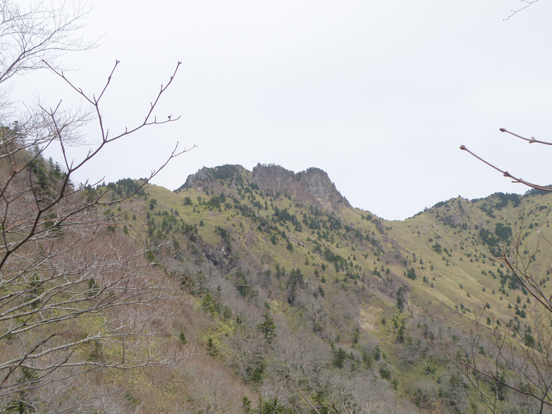 さて、ここからは綺麗な景色を眺めながら歩くことができる。 まず目前にあるのは「西ノ冠岳」。 これは登る場所がわからなかった… ゴツゴツした岩がむき出してとても荒々しい山。 そのうち登らなくては。
