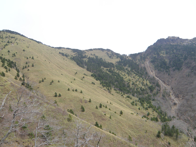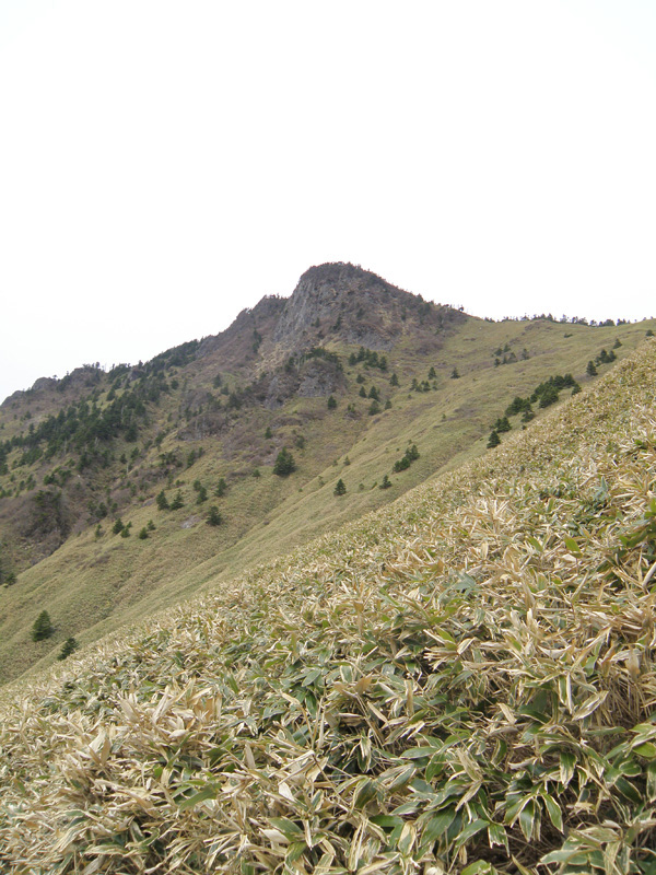 笹原から振り返ると、西ノ冠岳が。