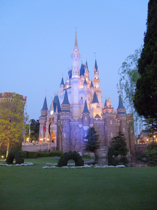 お土産を買い、夜のパークをうろうろ。 シンデレラ城がライトアップされて綺麗。