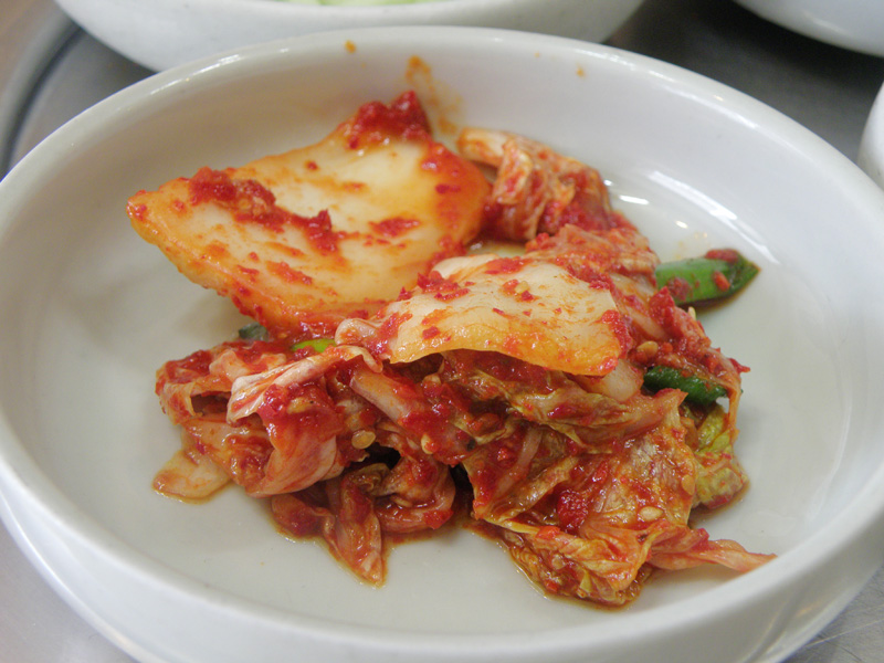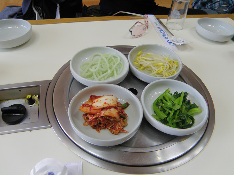 当然のように、キムチがテーブルに並んでいる。 まぁ焼肉だったら日本でもキムチは食べるけど、韓国ではどんな料理にもキムチがついている。