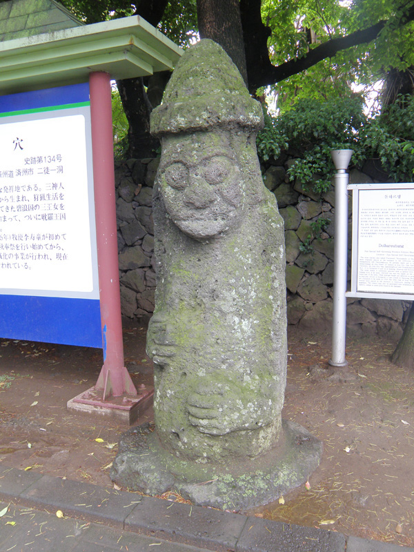 そんな伝説のある三姓穴。 日本でいう神社的な扱いの場所だろうか。 入口には「石のおじいさん」と言われる「トルハルバン」が飾られている。