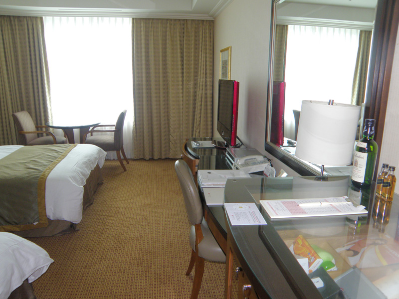 チェックインをし、ホテルの部屋へ。 ホテルはどこの国に行ってもだいたい同じような感じだね。 しかし部屋は同じでもアメニティが違う。 韓国では使い捨てるほとんどのものが有料らしい。 歯ブラシ、シャンプー、石鹸、カミソリなど。 日本から持ってきておいたので買わずには済むのだが…
