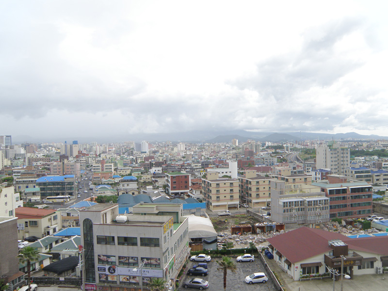 済州島に着くころになったら、雨風が激しくなってきた。 飛行機は揺れながら着陸。