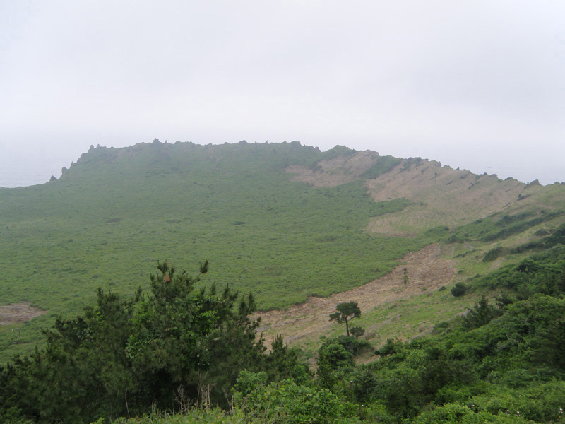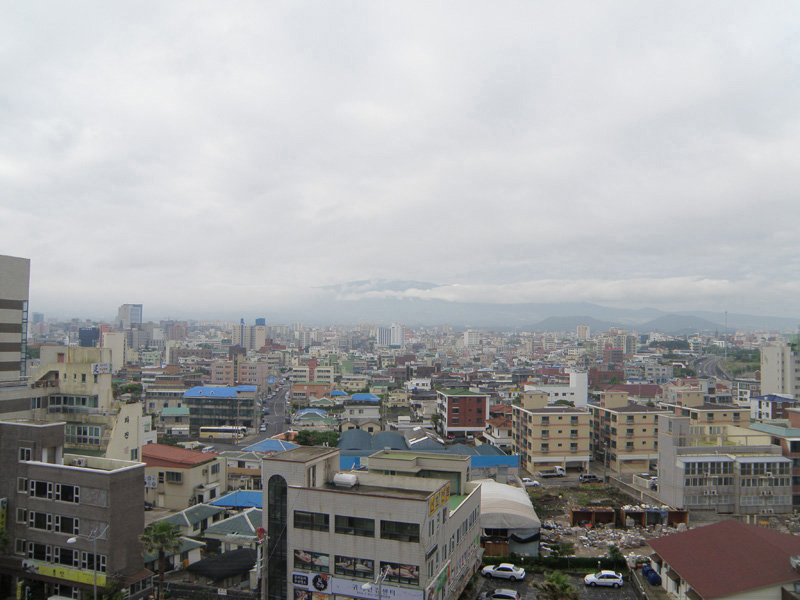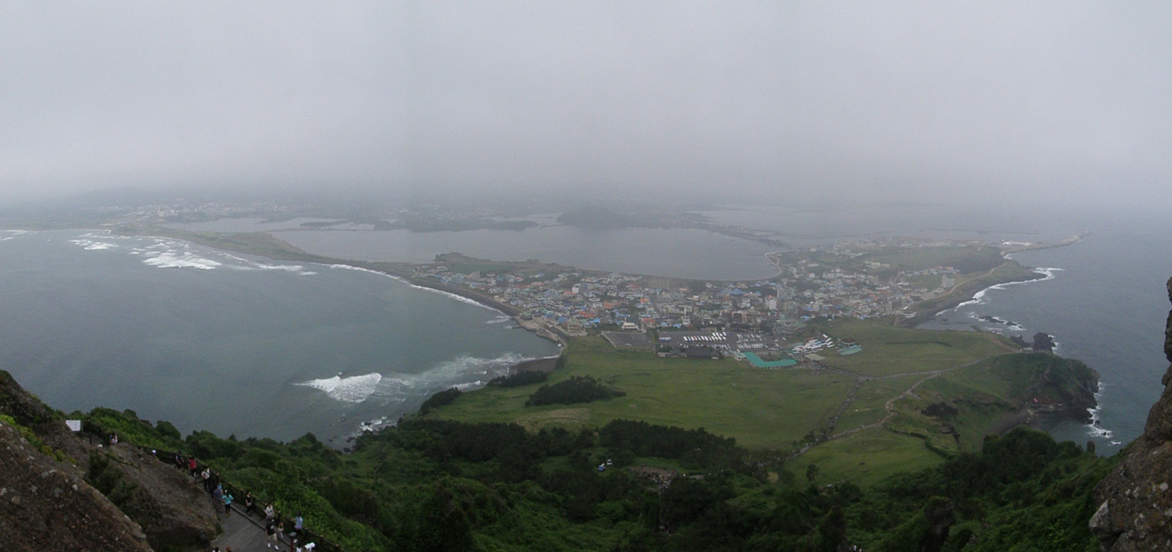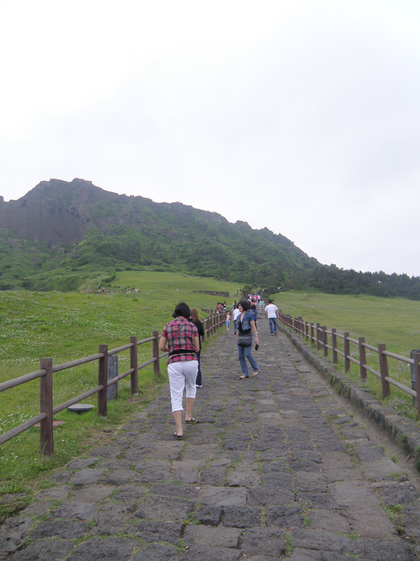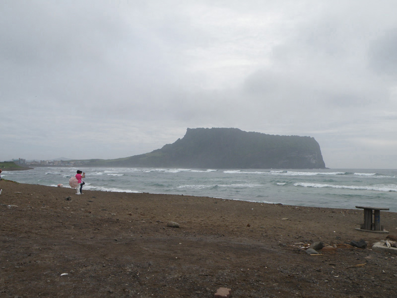 タクシーに乗り込み、目的地に向かってもらう。 目的地は「城山日出峰」という、海底噴火で生まれた山。 海の中にポツンとあり、かろうじて陸とつながっている。