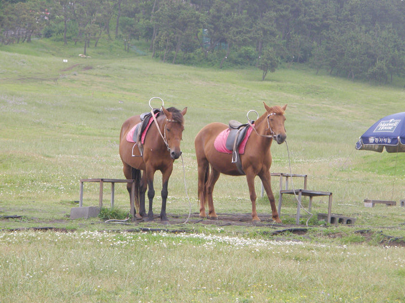 済州島の東の端にあって、タクシーで一時間ほどかかるらしい。 途中で乗馬場の横などを通りながら目的地に向かう。