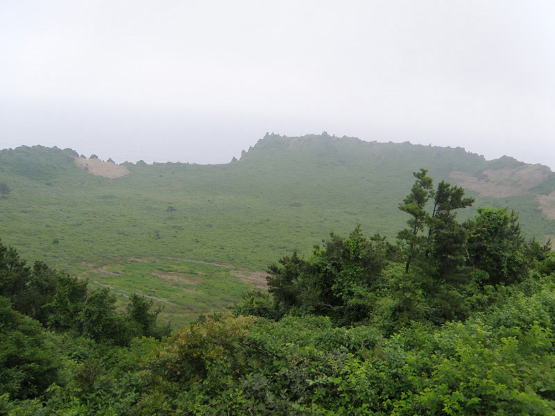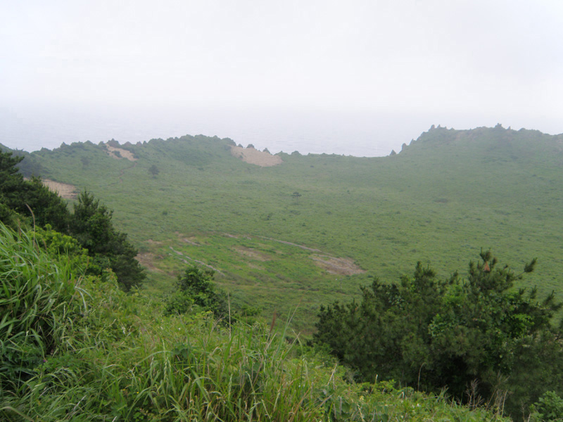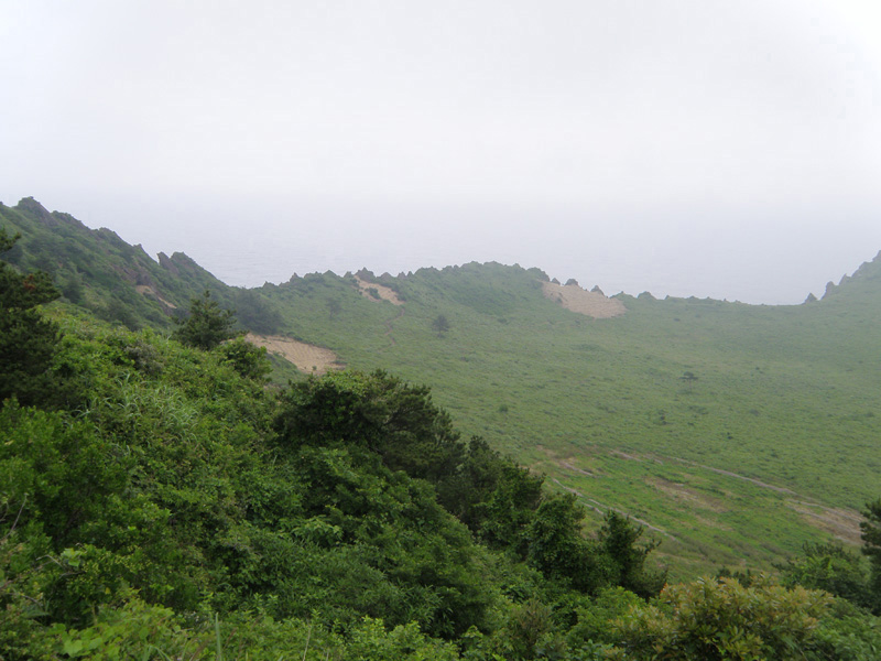 そして肝心の火口を見る。 綺麗にお椀形になっているのだが、やっぱりヘリとかに乗って上空から見てみたいな。 写真に収めようとしたが、これを収めるのは無理だ。