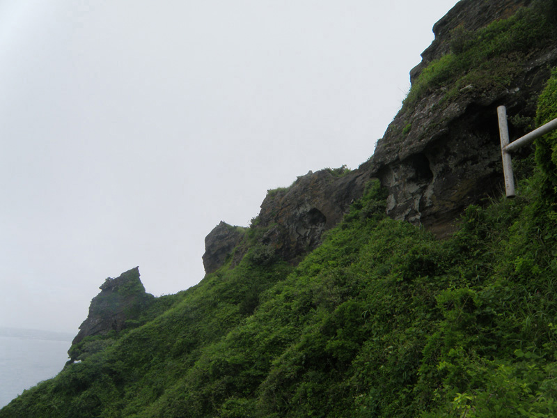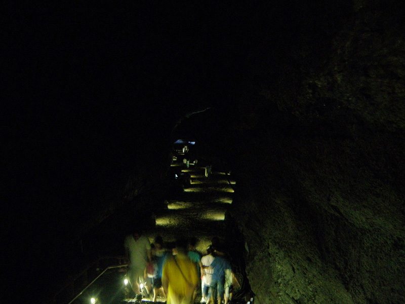 まだ少し時間があるので溶岩洞窟の「万丈窟」というところに連れて行ってくれた。 日本だと洞窟と言ったら鍾乳洞とかがメジャーだけど、済州島では溶岩洞窟がメジャーらしい。 名前の通り溶岩が流れていたところがそのまま洞窟になった感じ。