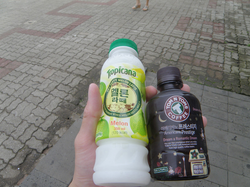 韓国語がわからないので「Present for you」と言って渡したら「ありがとう」と言って、キャップを開け、一気に飲み干した。 チビチビ飲まないのか、コーヒーなのに。